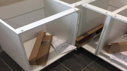 Upon arrival, we suggest you have the flat packs ready on site. Please provide a large clear space, where our furniture fitters can complete the task at hand. You can expect us to be fully equipped, carefully plan out the job and dive straight into the fitting process.